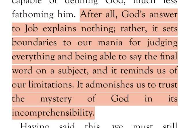 We read Job recently in our chapter of Dominican Laity and I was struck as I was reading: so often Job is pushed forward in homilies or in liturgical readings as a sort of answer for why is there evil. But, really – having read the book end to end – there is no answer to these sorts questions, in fact the book sort of un-asks them. Rather than provide an answer it says – baldly – “Bad things happen. Who are you to ask questions like this?”
